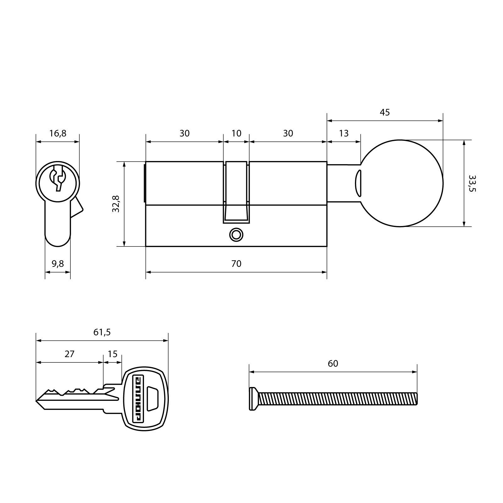 Аллюр Цилиндровый механизм A.G 70-5K BP (латунь) ключ/верт BLISTER