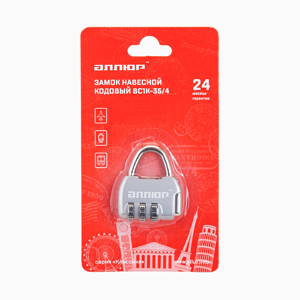 Аллюр Замок навесной кодовый ВС1К-35/4 (серебро)