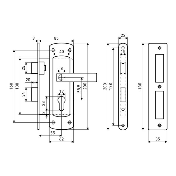 Аллюр Замок врезной ЗВ 4-1/58А CP (хром) ДЛЯ КАЛИТОК