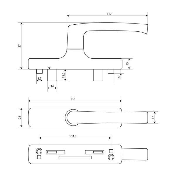 Булат Ручка оконная РО-01А.9016, два ригеля, для ал.профиля Р400 (белая)