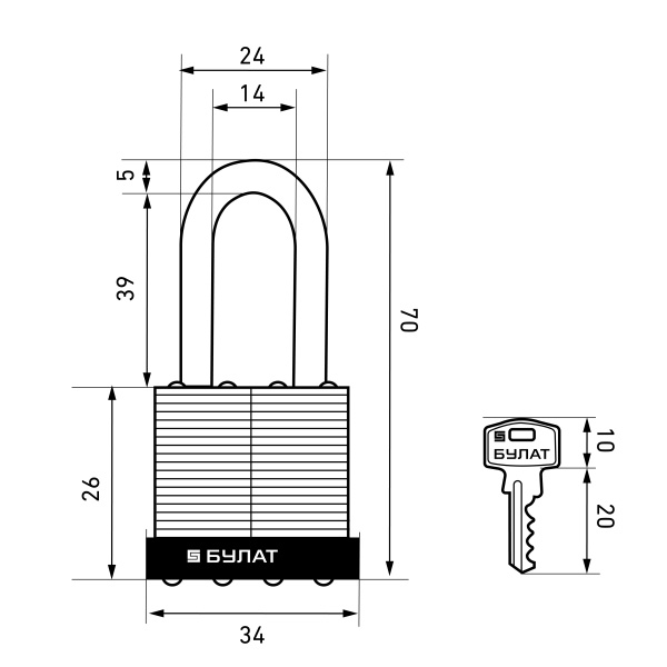 Булат Замок навесной ВС 0130-01 d=5мм