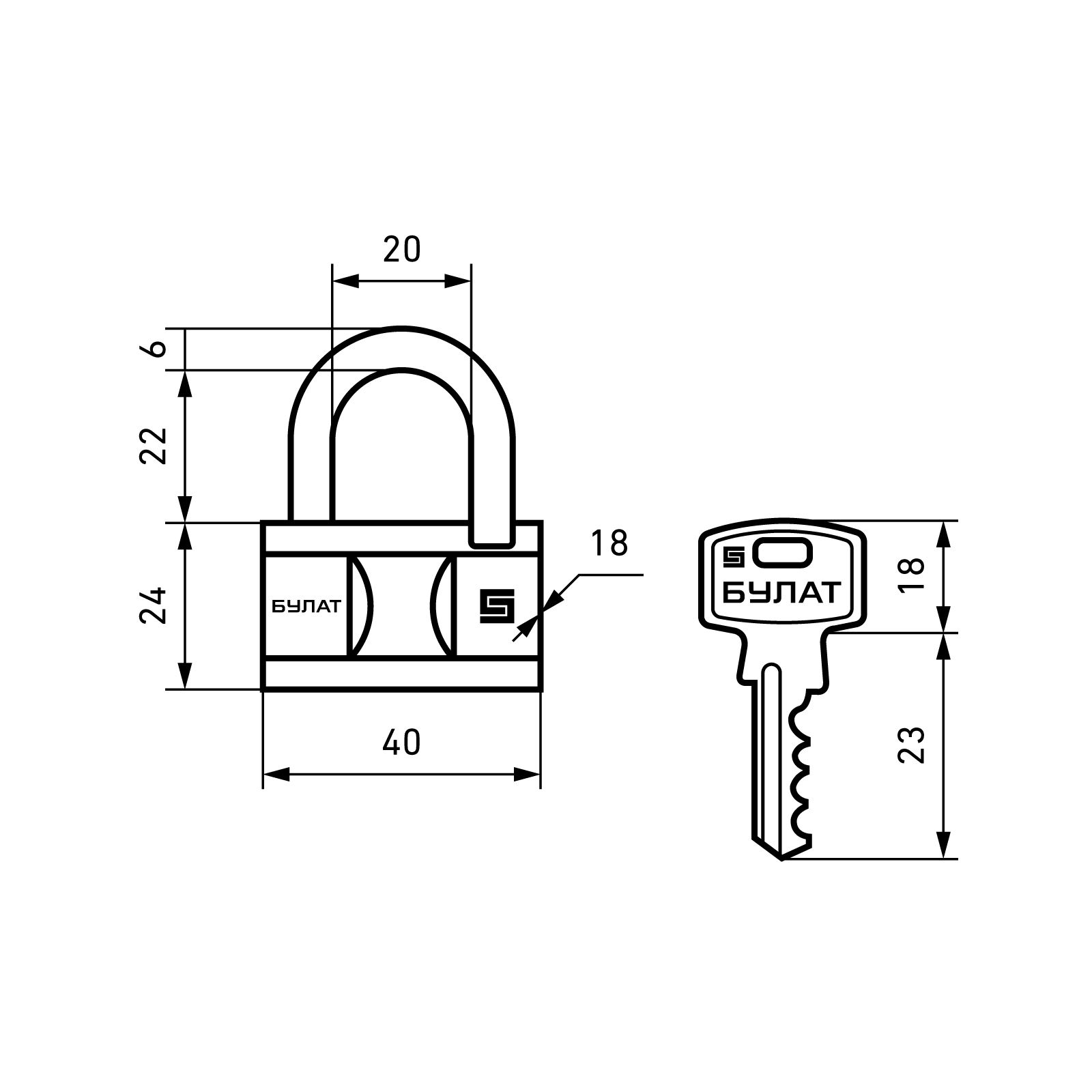 Булат Замок навесной ВС 1-040 латунный d=6мм