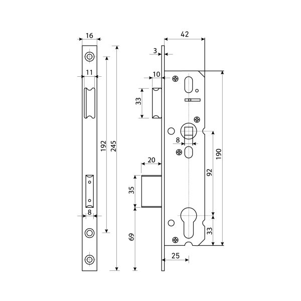 Булат Замок врезной ЗВ 4-1.25.92.16.08 нерж.сталь