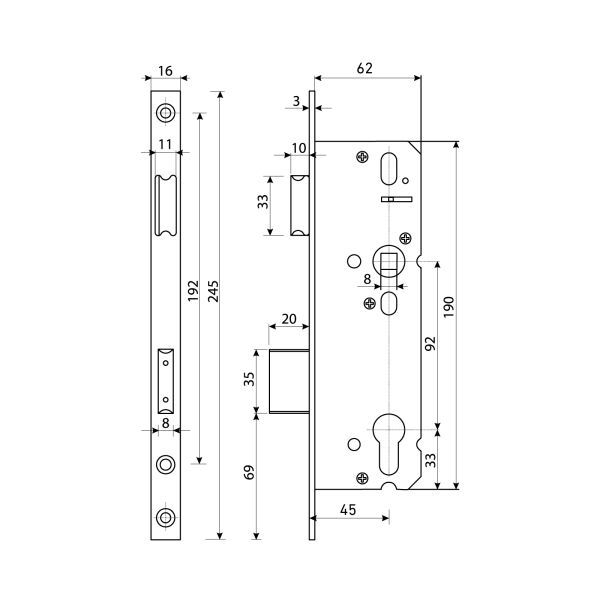 Булат Замок врезной ЗВ 4-1.45.92.16.08 нерж.сталь