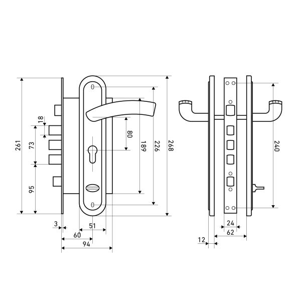 Булат Замок врезной ЗВ 4-4В.60.80.01.03-R АЛЬФА (чёрный)