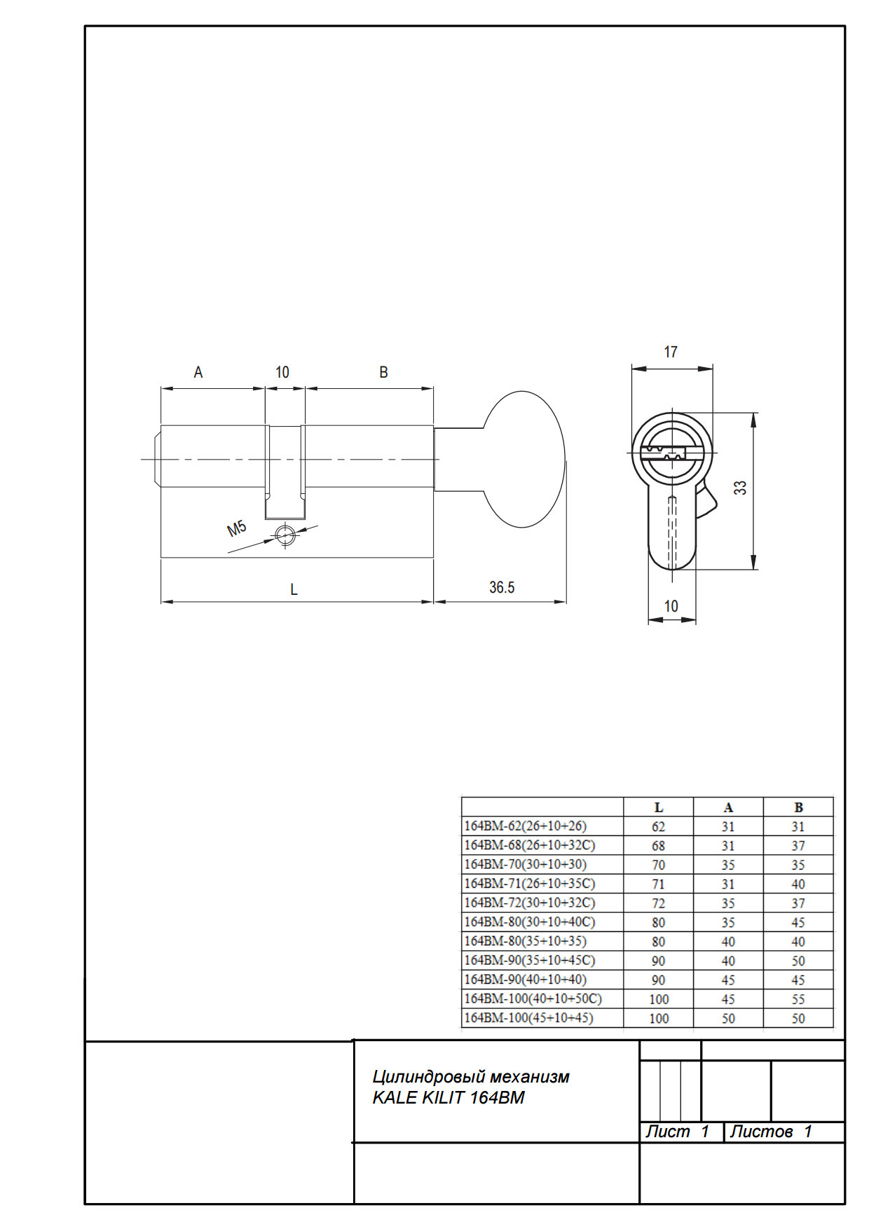| Тип цилиндрового механизма | |