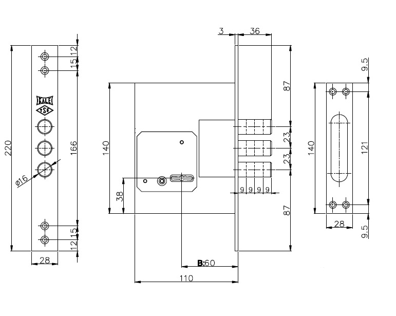 Kale Замок врезной 257L-BS60-CP-5KEY-(w/oSP,w/oRos)- PB (75мм) (cувальдный)