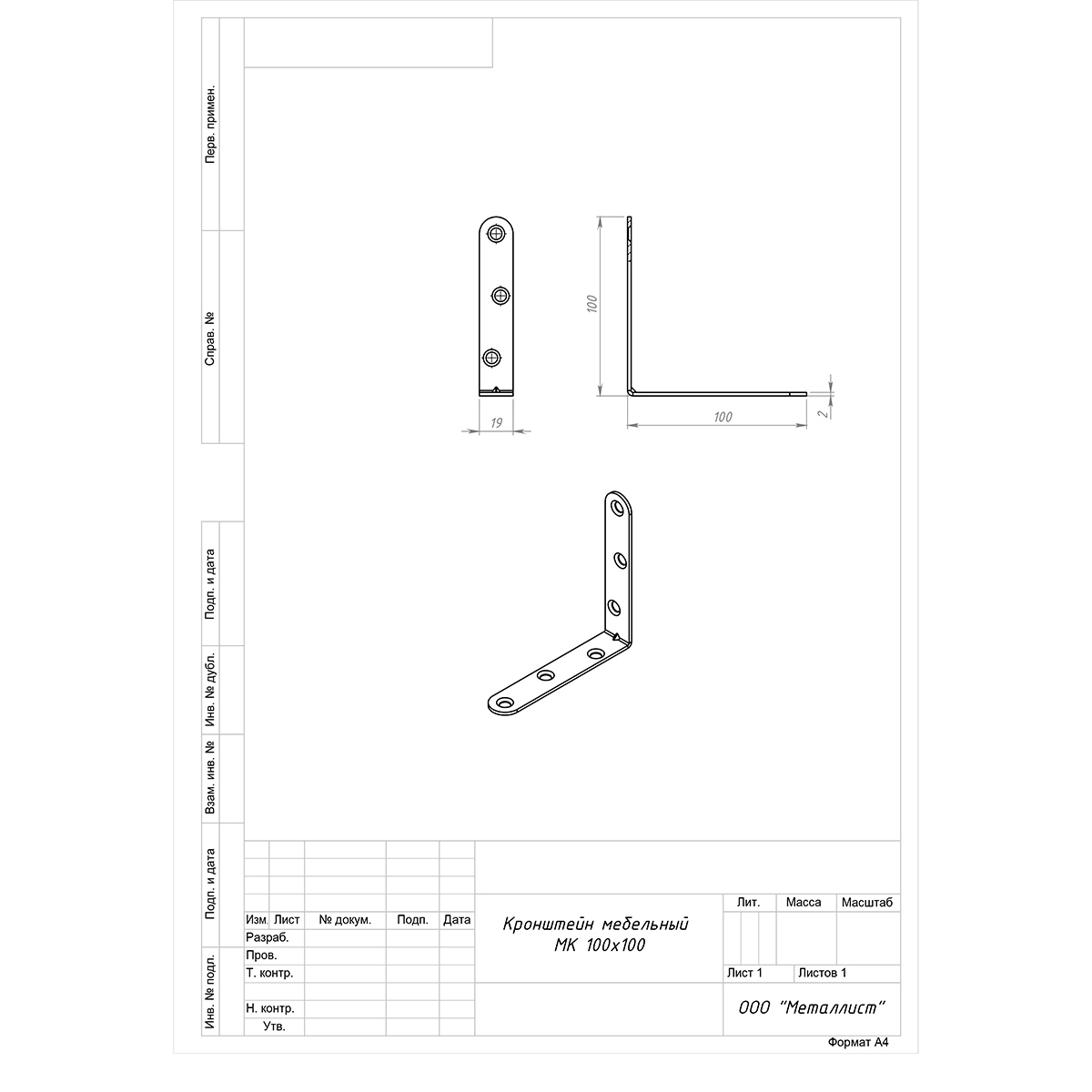 Кронштейн МК 100х100 (цинк)