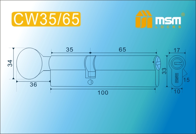 MSM Цилиндр перф. ключ-вертушка , CW 100 mm (35в/65) SN