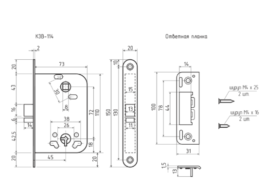 Н-М Корпус замка КЗВ-114 (72 мм) – хром