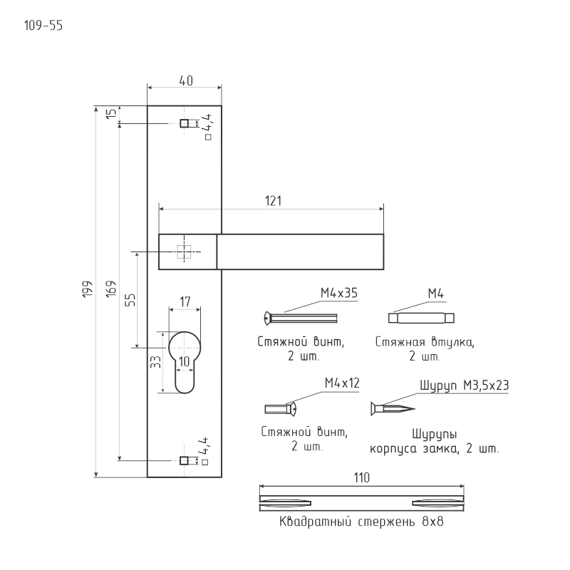 Н-М Ручка дверная на планке 109-55 мм (золото)