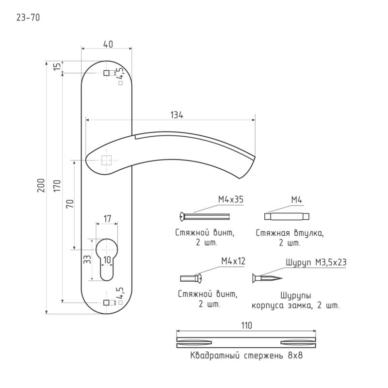 Н-М Ручка дверная на планке 23-70 мм (графит)