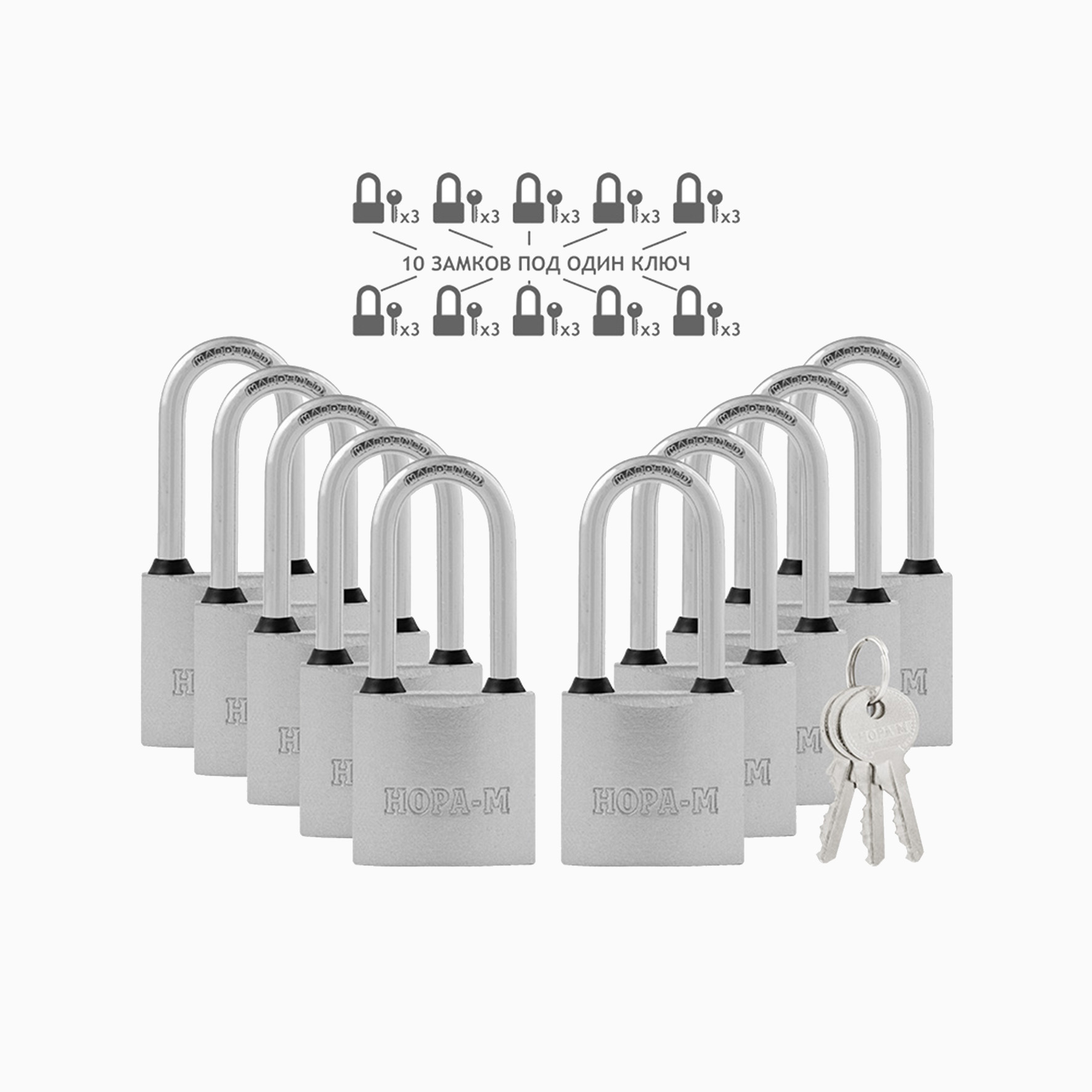 Н-М Замки навесные мастер-ключ 1010дд-32 (10 замков+30 ключей)