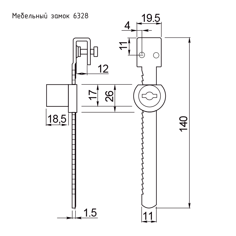 Н-М Замок витринный 6328 (L=140 мм) (хром)