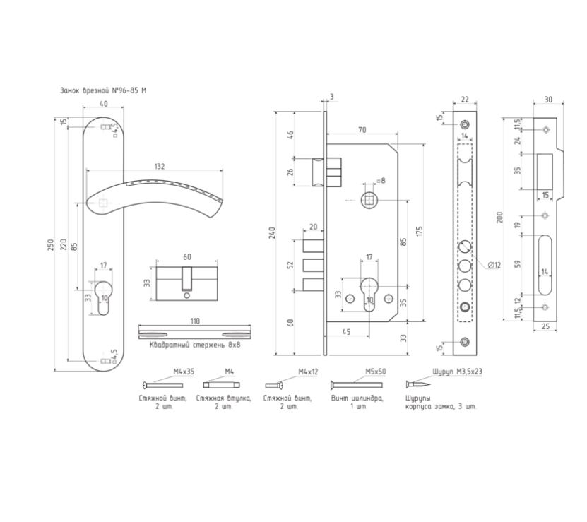Н-М Замок врезной N96-85 М (матовый хром)
