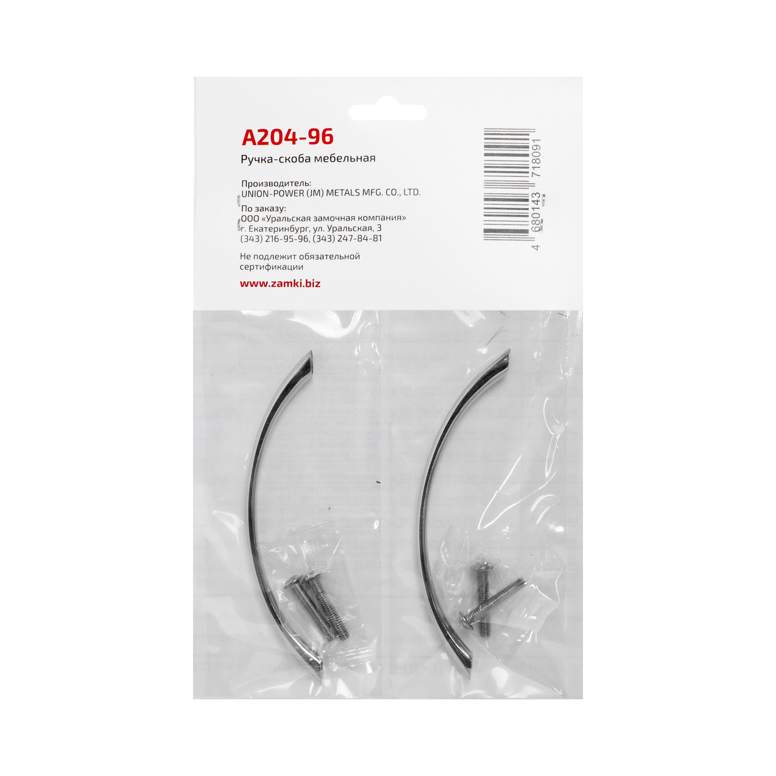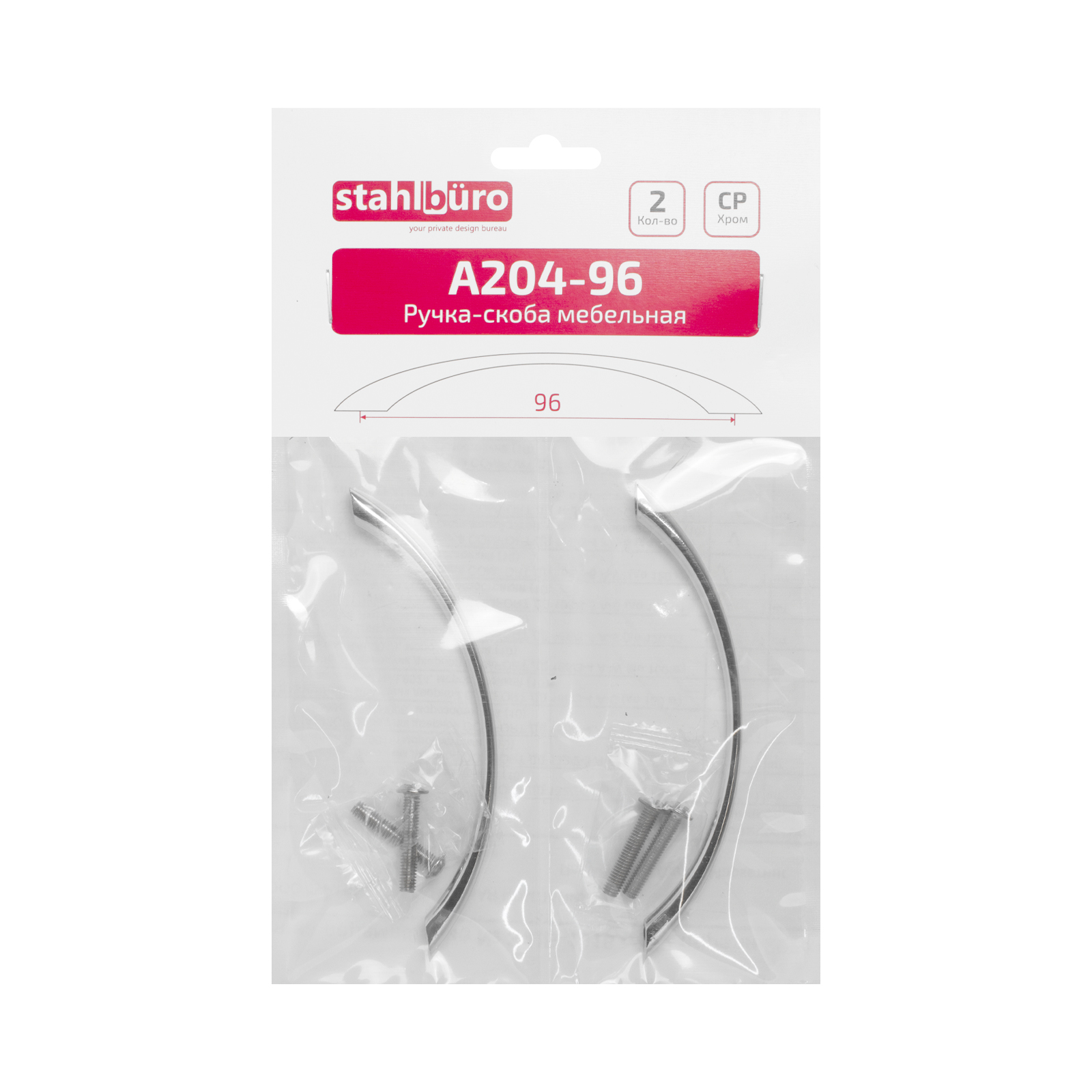 StahlBuro Ручка-скоба мебельная А204-96 CP (хром) 2 штуки