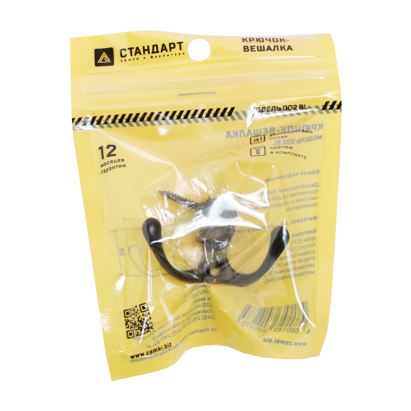 Стандарт Крючок-вешалка 002 BL (матовый чёрный)
