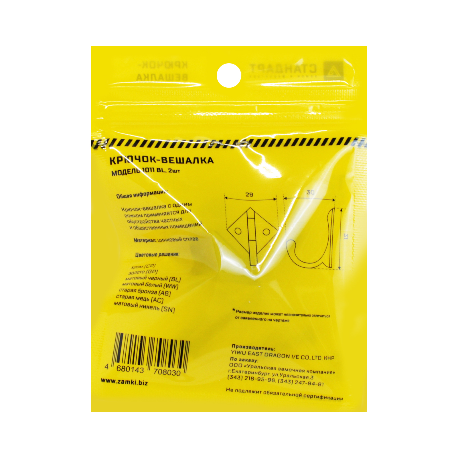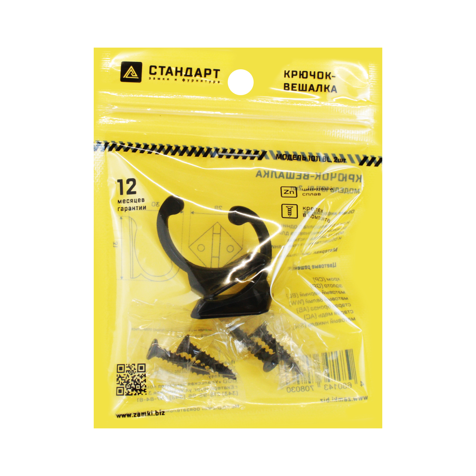 Стандарт Крючок-вешалка 1011 BL (матовый чёрный) 2 шт.