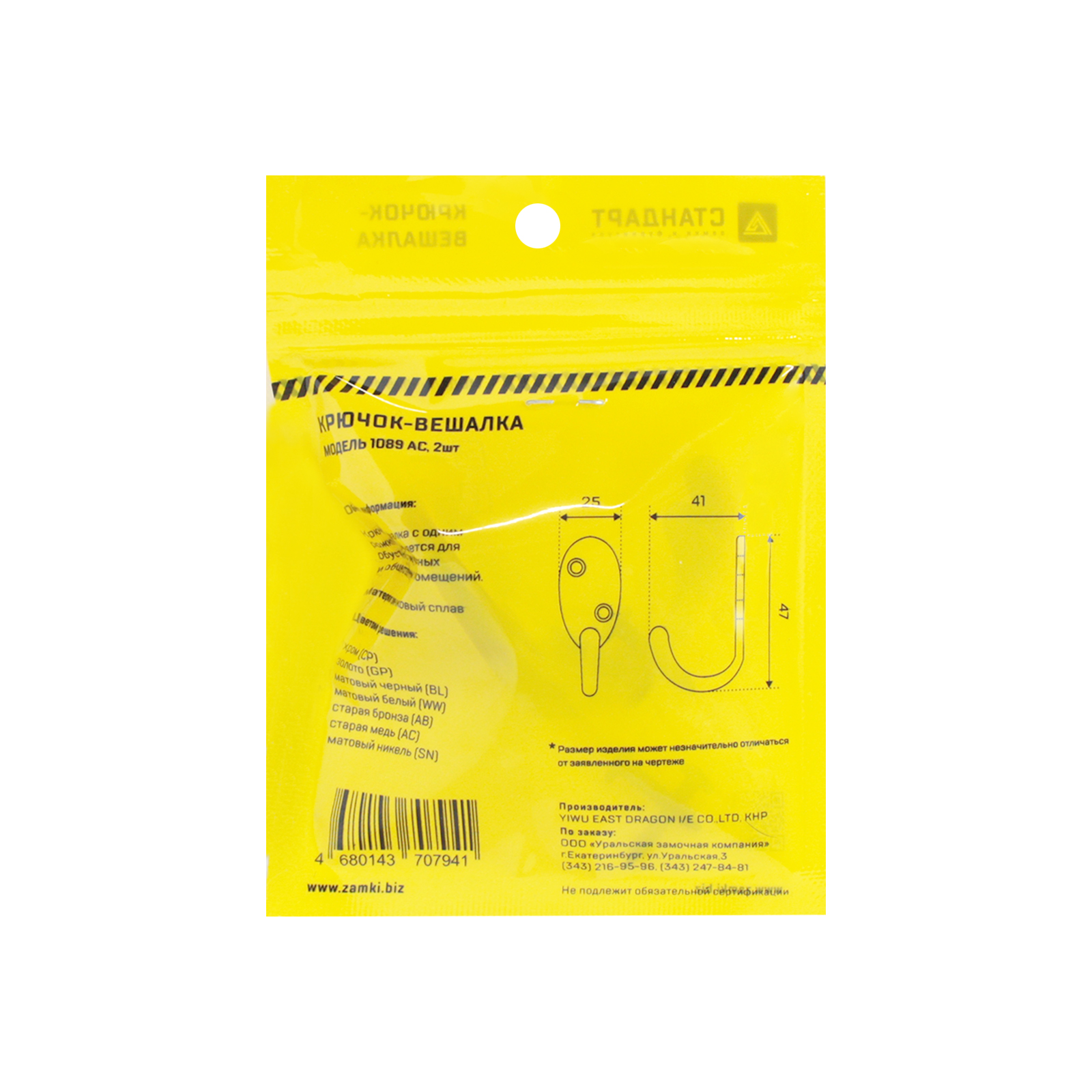 Стандарт Крючок-вешалка 1089 AC (старая медь) 2 шт.