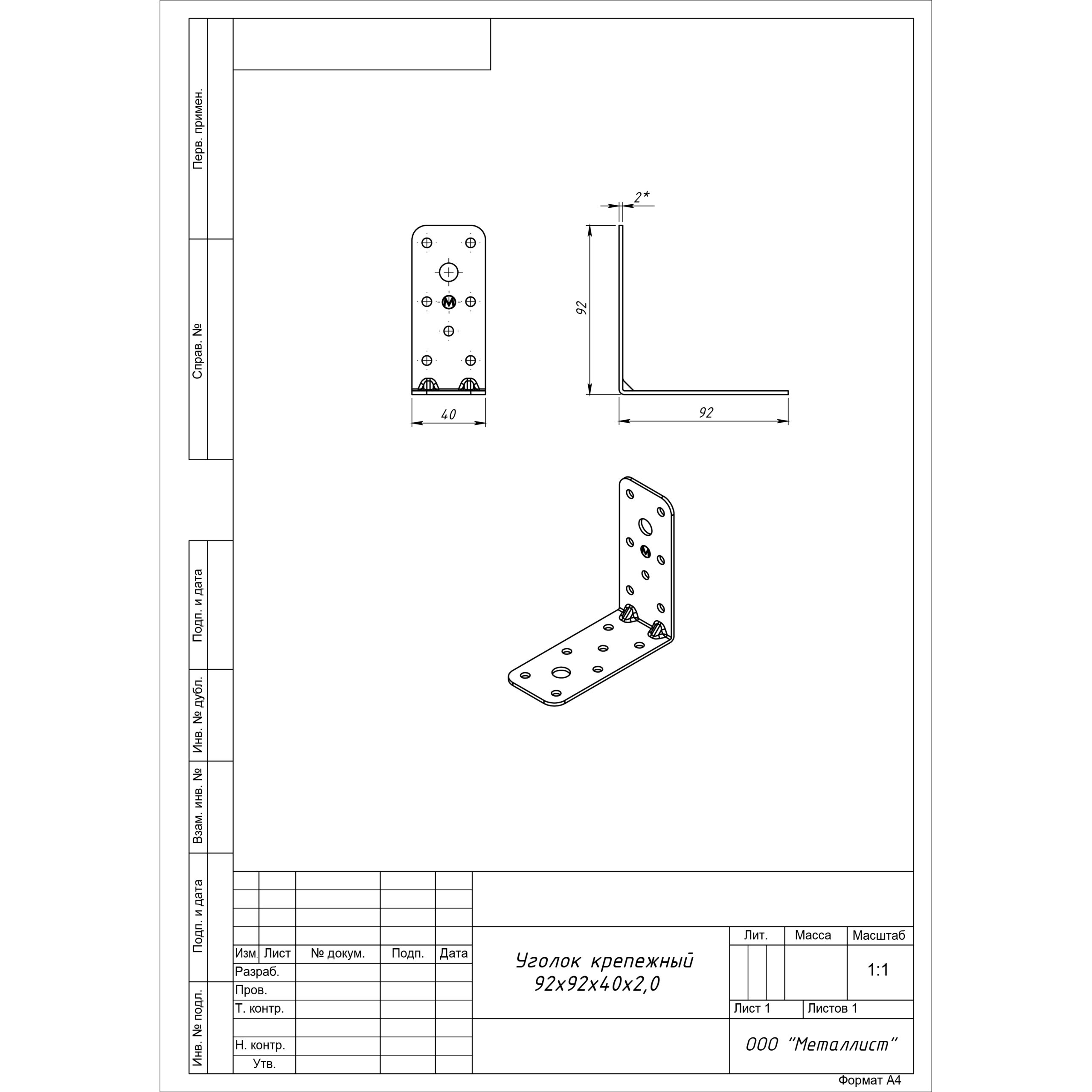 Уголок крепёжный 92*92*40 (цинк)