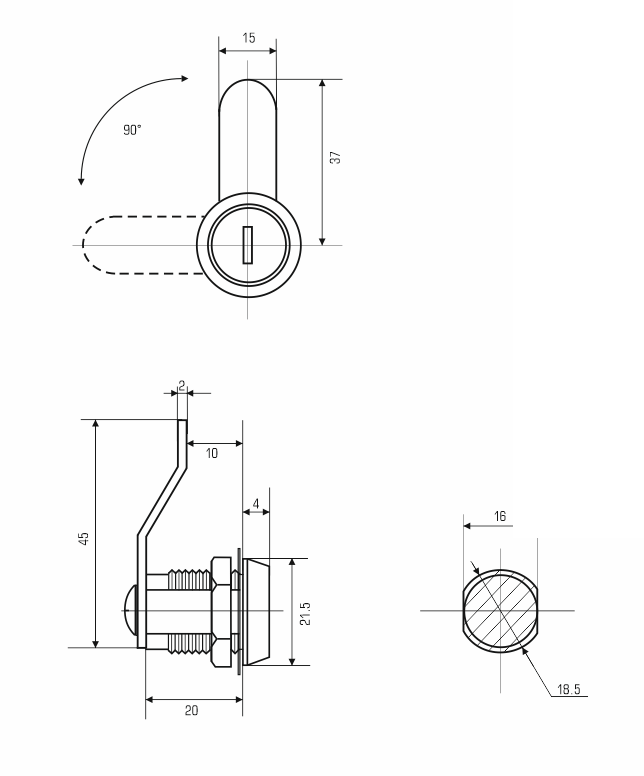 Замок почтовый Eurolock 20 мм 90 (ригель изогнут на 5 мм)