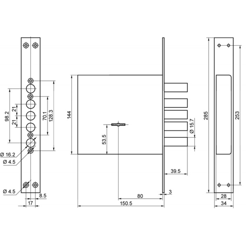 | Вылет ригелей (мм) | |
