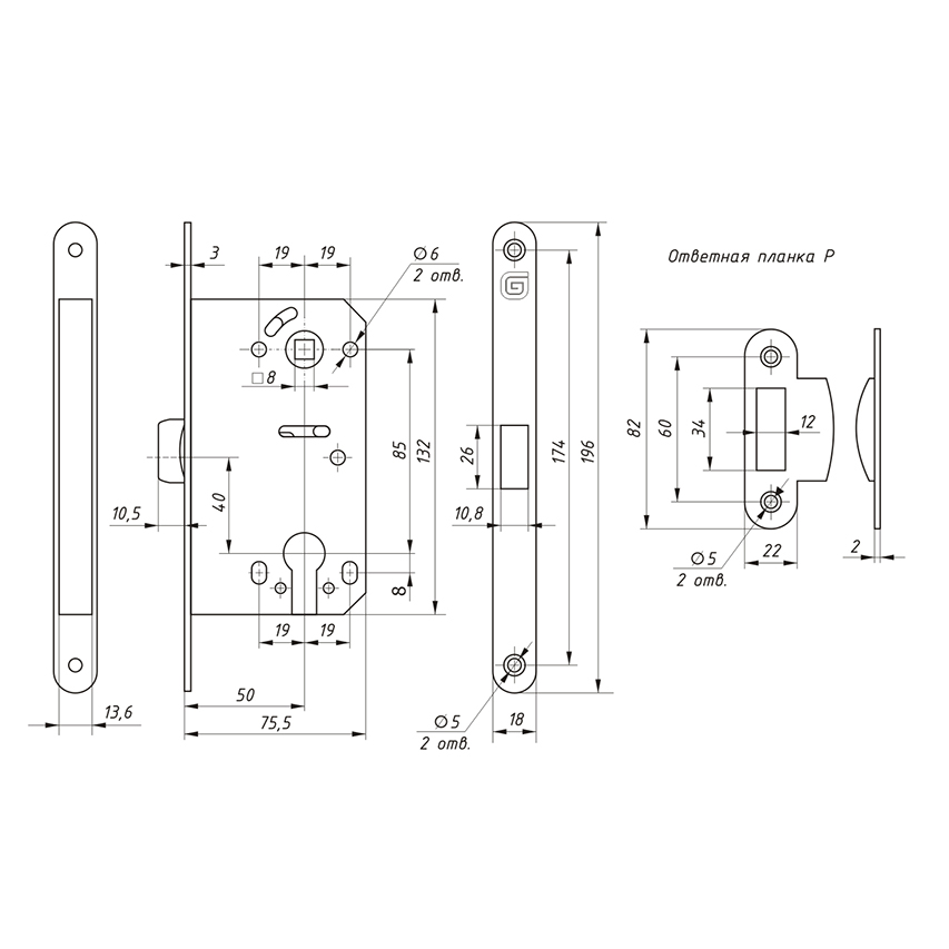 Замок врезной Гардиан Soft 11 P – MCR, пластиковый язык б/ц (матовый хром)