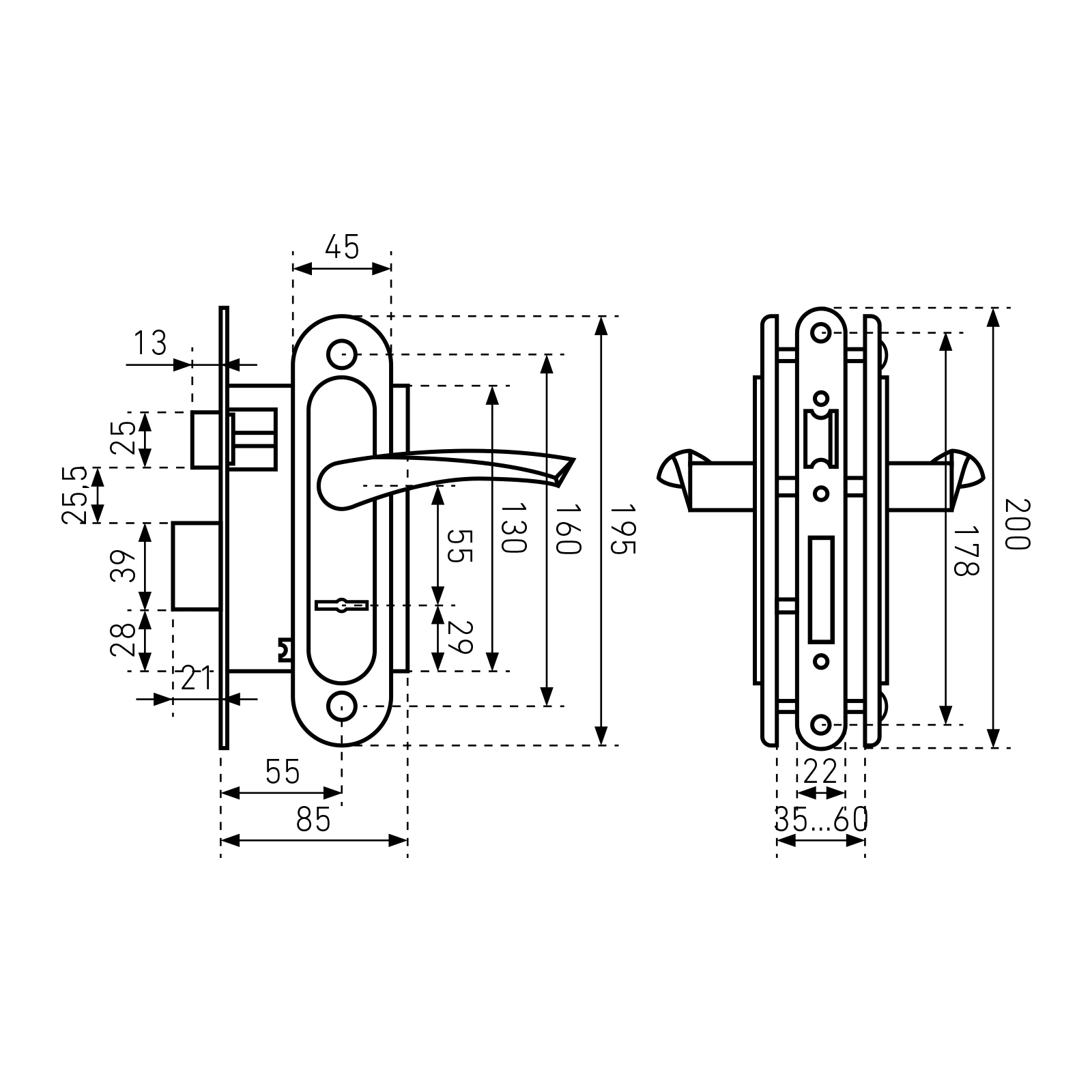 | Толщина двери, мм | |