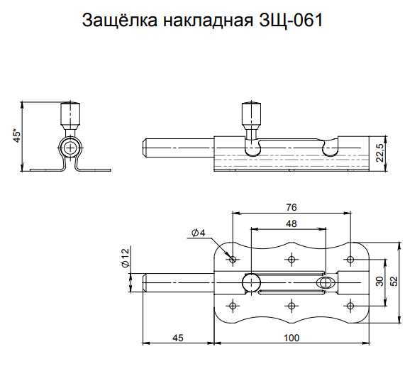 Засов дверной ЗЩ 061 под навесной замок (цинк) г.Боровичи L-100мм