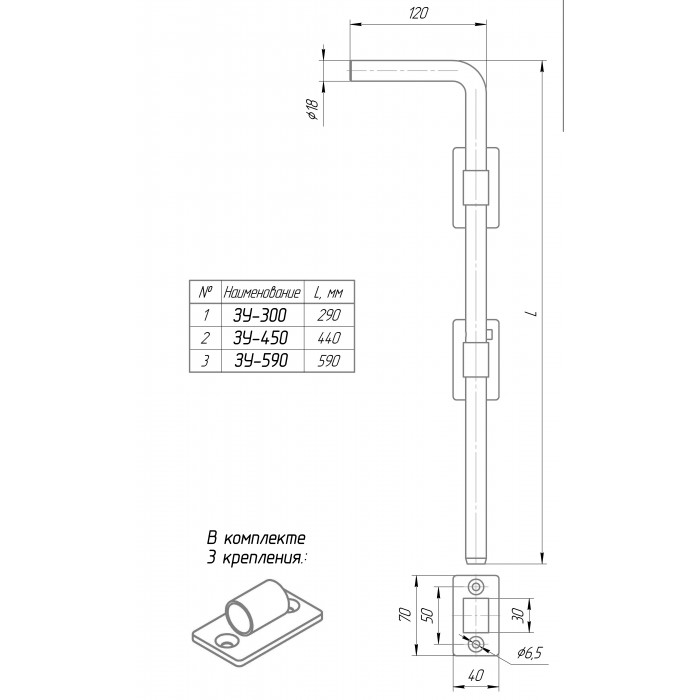 Засов универсальный ЗУ-300 (чёрный)